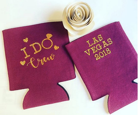 Wine Burgandy Deep Purple Custom Name Two Sided Can Cooler Glitter Gold Lettering Can Coolers Bachelorette Party Las Vegas Bach