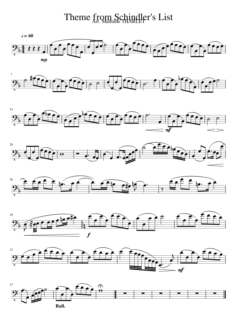 Theme From Schindler S List Sheet Music For Cello Download Free In