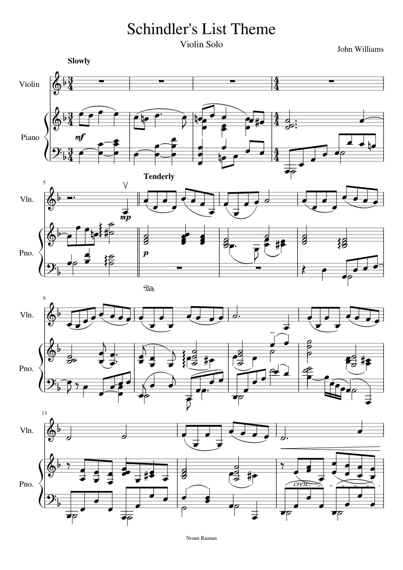 Schindler S List Theme Sheet Music For Violin Piano Download Free
